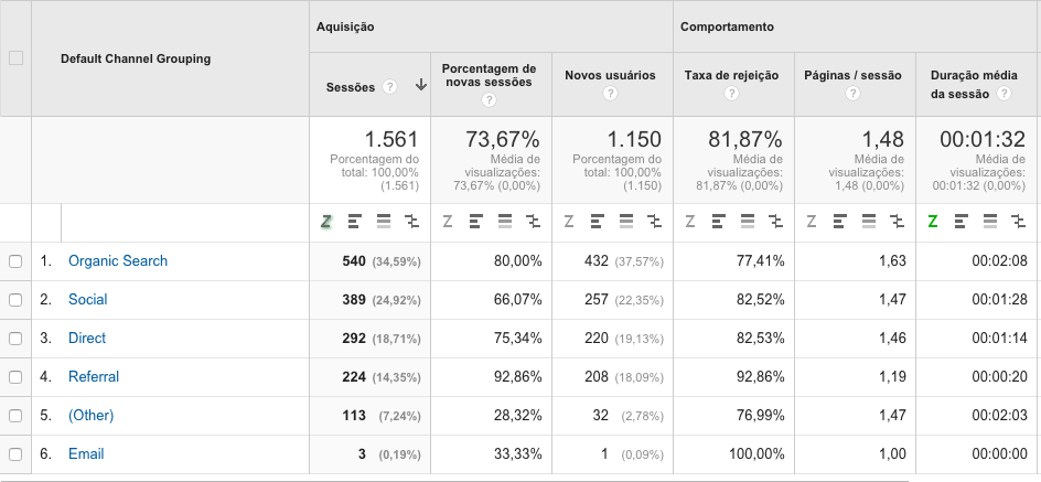 Possivelmente você já se deparou com o agrupamento de canais do google-analytics igual a imagem abaixo e ficou se perguntando é possível editar isso?