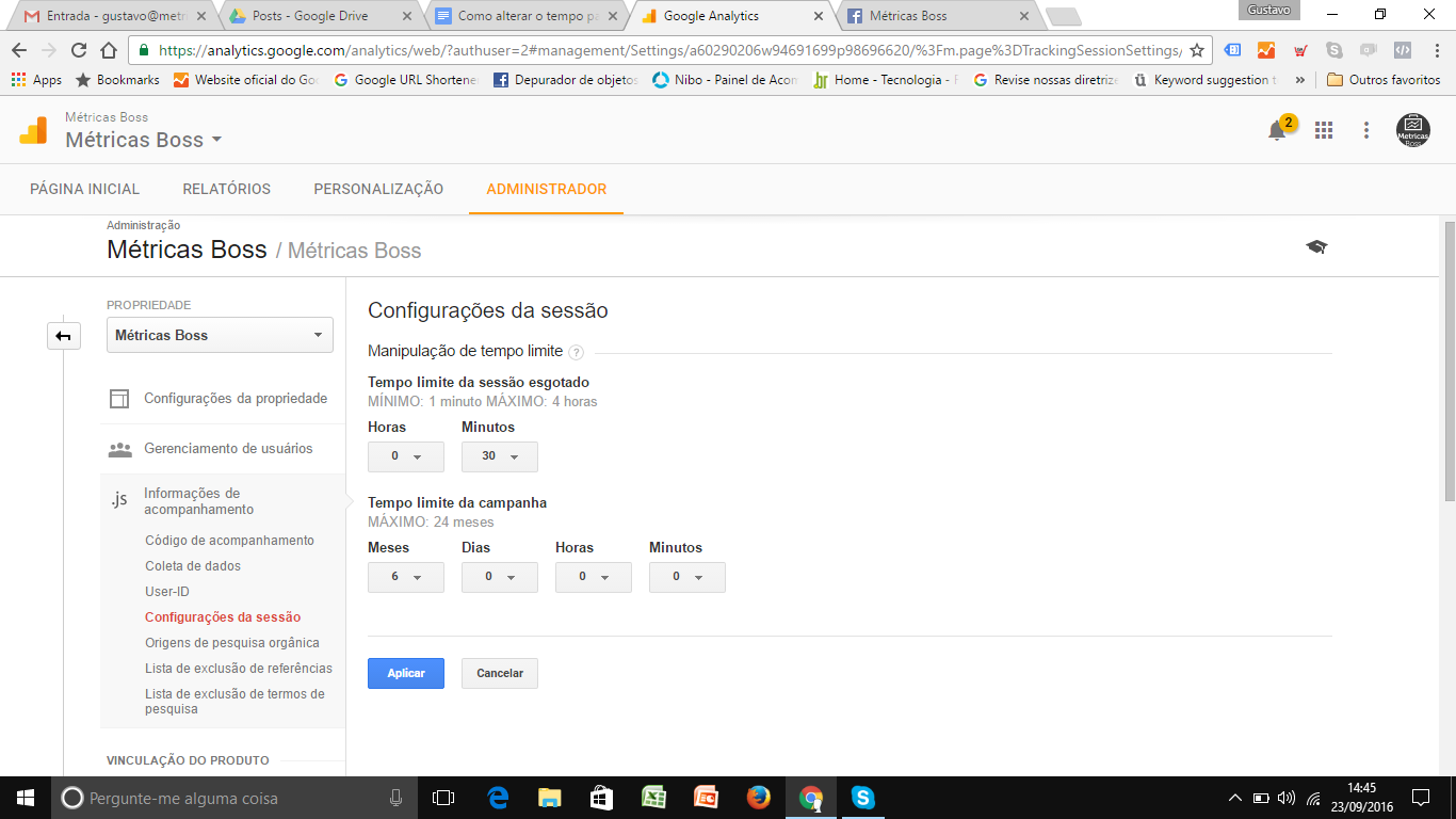 Como alterar o tempo padrão das sessões do Google Analytics?