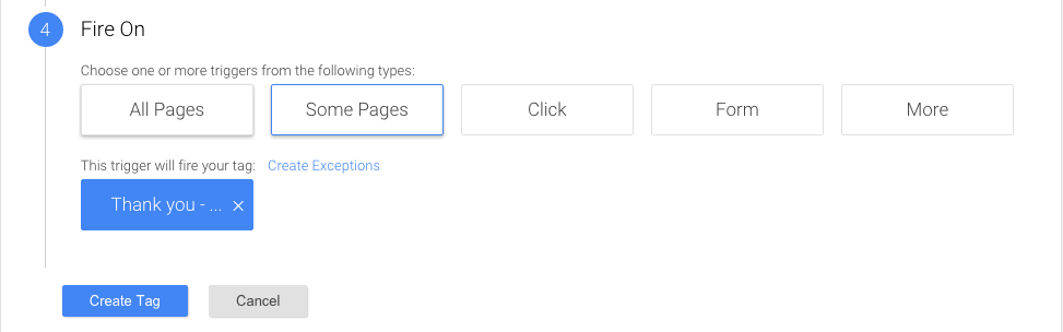 Pronto, após a configuração do id de conversão, do rótulo, da moeda e do valor da transação agora iremos vincular um acionador a essa tag. Nesse caso iremos analisar os dados na página de finalização de pedido devido a ser lá a finalização do fluxo de compra do usuário.