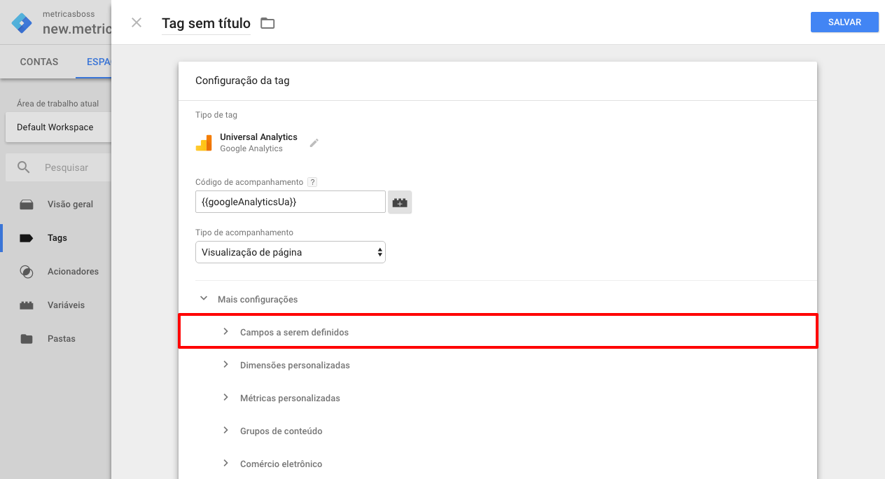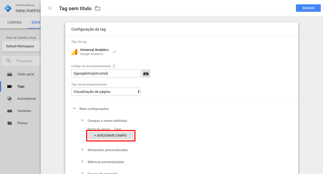 Com isso agora conseguimos criar uma tag do Google Analytics que irá armazenar essas informações e passar para os relatórios, bora fazer?