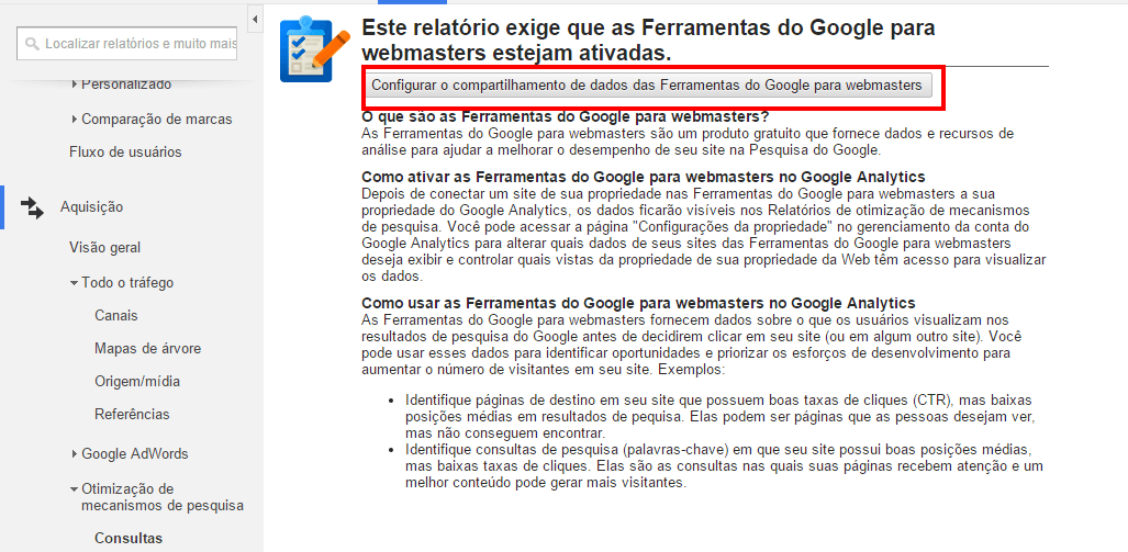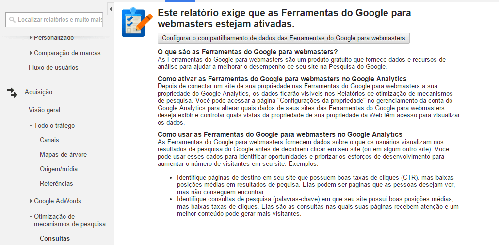 Confira o passo a passo de como integrar o Google Web Master Tolls com o Google Analytics: