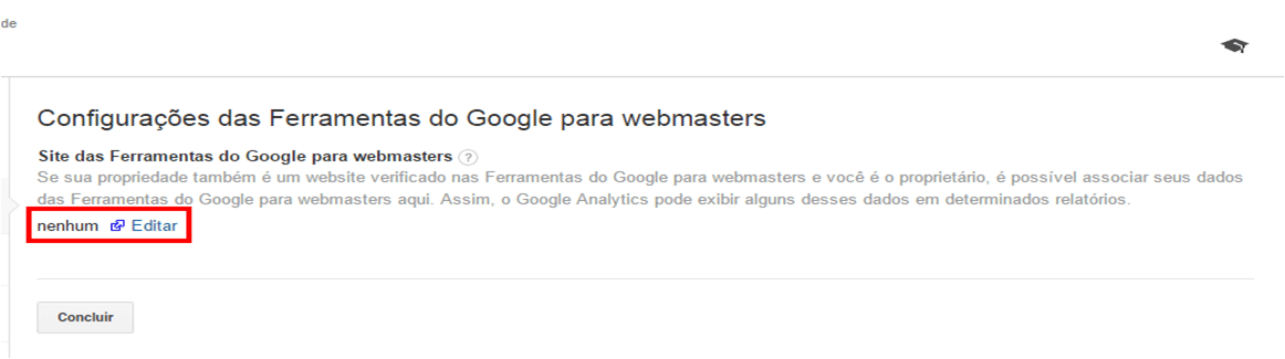 - •Como você ainda não efetuou a integração com o Google Search Console, será necessário clicar em editar, conforme a imagem abaixo.