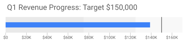 Além das novas ferramentas de compartilhamento e colaboração, Data Studio tem muitas maneiras flexíveis para apresentar seus dados . Claro, existem os gráficos de barras, gráficos de pizza, e de séries temporais. Mas fora incluídos também algumas novas visualizações – como gráficos de bala que ajudam a comunicar o seu progresso em direção a um objetivo de negócio.