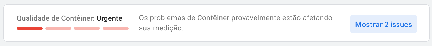 Esses diagnósticos de qualidade ajudam a identificar problemas na configuração das suas tags através de diferentes alertas, como: