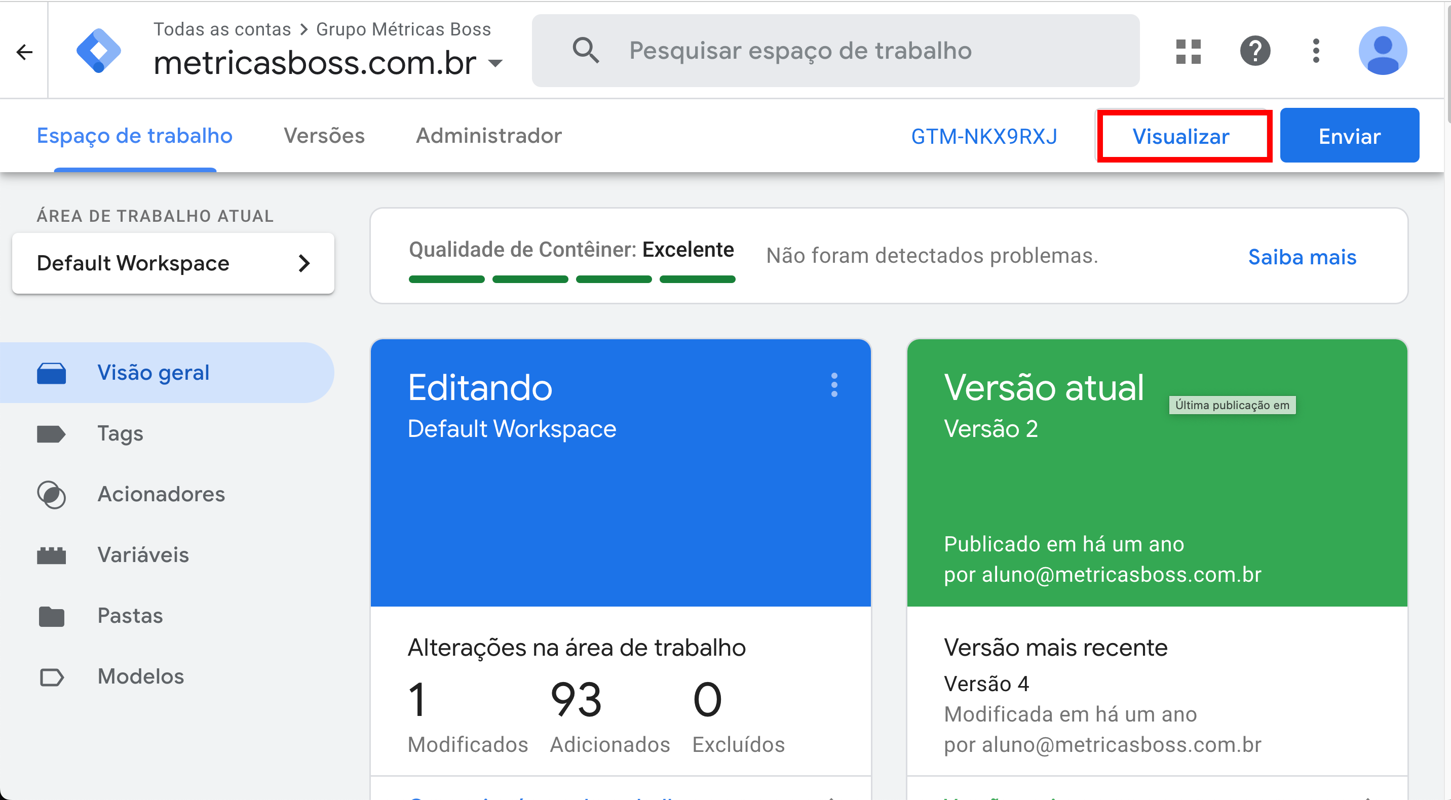 - •No Google Tag Manager, clique no botão “Visualizar”.