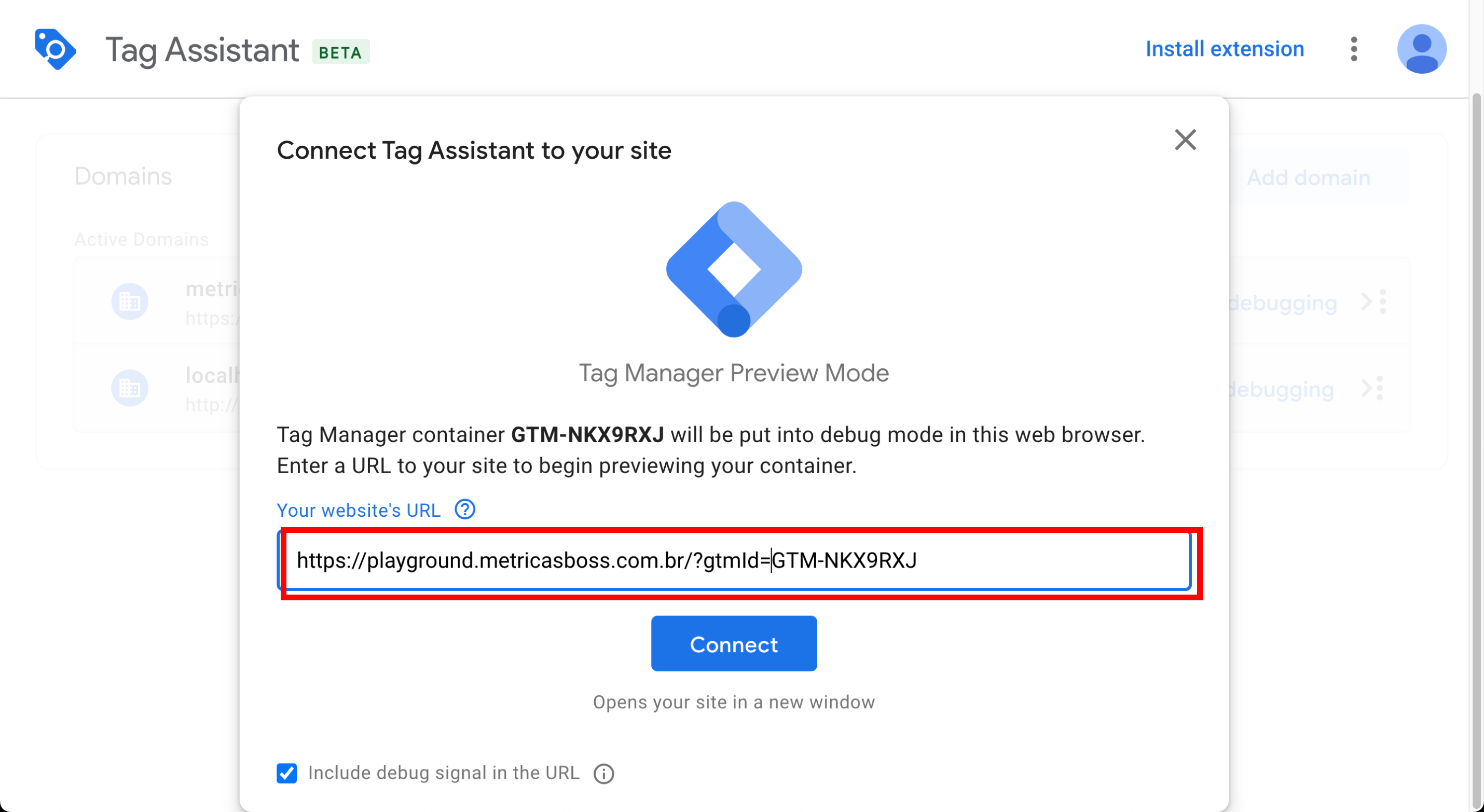 https://playground.metricasboss.com.br/?gtmId={ID_DO_SEU_CONTAINER_DO_GTM}