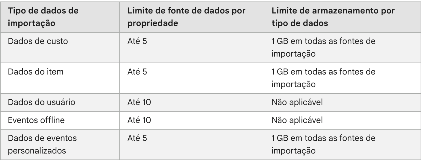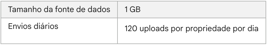 Tempo de coleta/processamento: seus dados importados são unidos aos dados do Analytics conforme os dados do Analytics são coletados e processados, como se fossem coletados com o evento, e os dados unidos são gravados nas tabelas agregadas do Analytics. Os dados importados não são unidos aos dados históricos do Analytics (dados que já foram processados). Se você excluir o arquivo de dados importado, nenhuma outra junção ocorrerá, mas as junções que já ocorreram permanecerão.