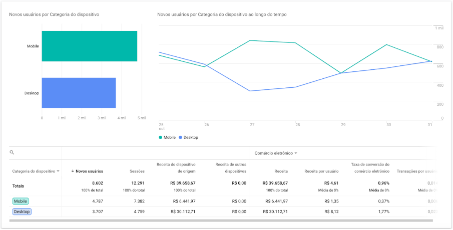 Esse relatório é importante para que a gente entenda qual dispositivo é mais importante na hora de trazer usuário para o nosso site e como eles se comportam ao longo da conversão para gerar estratégias de conversão através do uso de diferentes dispositivos.