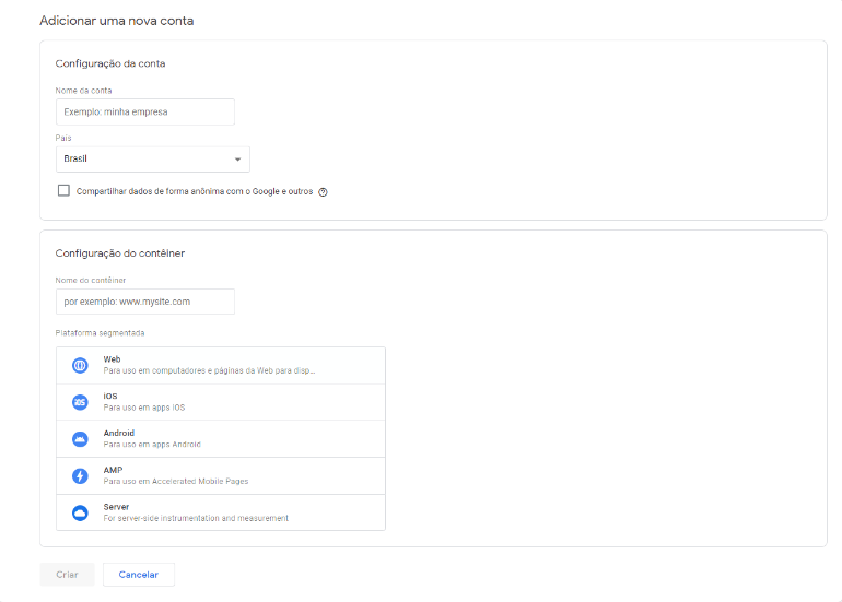 Para criar sua conta no Google Tag Manager é bem fácil, só seguir os seguintes passos: