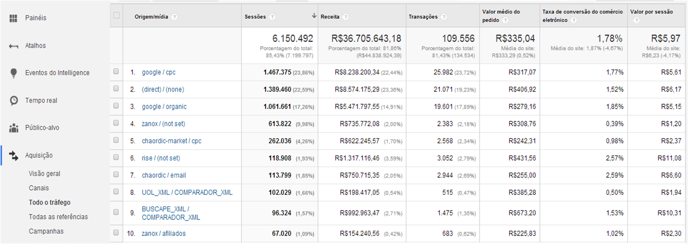 Entenda que tirando cpc, direct e organic, nenhuma das origens abaixo apareceriam dessa maneira se não estivessem configuradas via URL Builder para isso, **porém serve apenas para mensurar tráfego externo!