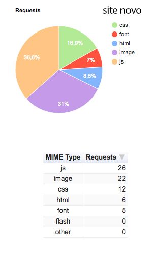 A quantidade de requisições também foi um ponto bem importante nessa mudança do site, na versão anterior como podemos ver tínhamos o total de 112 requisições, e muito dessas requisições eram devido ao nosso tema do wordpress, com o site novo além de re-estruturar o nosso código fonte, limpamos a quantidade excessiva de bibliotecas e limitamos os nossos templates a carregar somente o que ele precisasse. Diferente da versão antiga que carrega todos os assets para todas as páginas conseguindo a marca de 71 requisições nesse novo site.