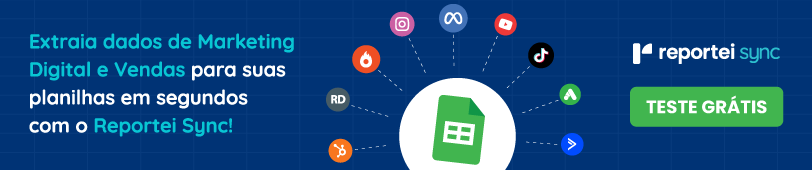 É um jeito fácil de criar e visualizar relatórios no Google Sheets, se você precisa importar dados de diversos canais e redes para criar relatórios completos de marketing digital e vendas, o Reportei Sync vai te ajudar a fazer isso rapidamente.
