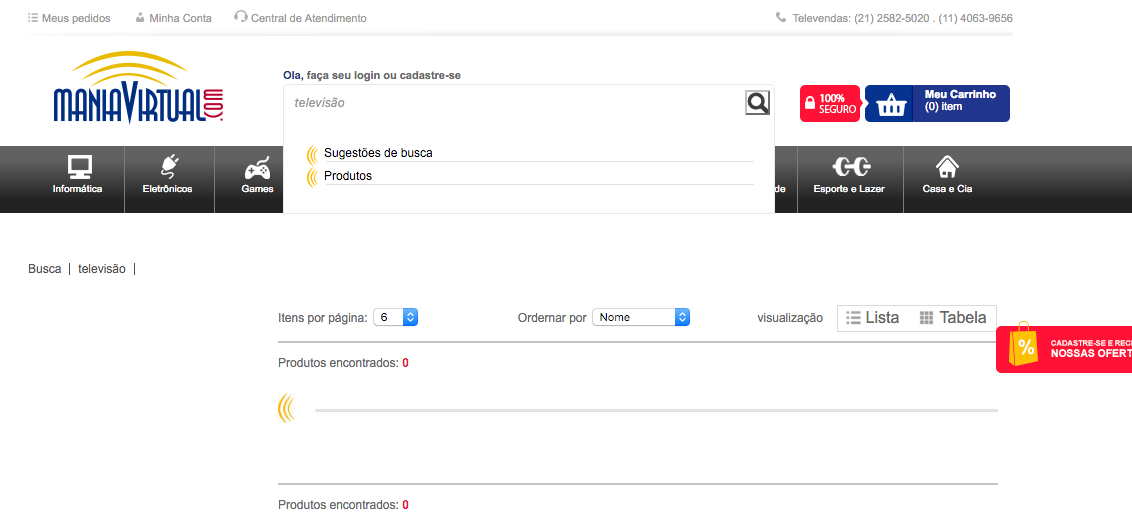 🔹 Agora fazendo a busca por “televisão”, olha o resultado encontrado: