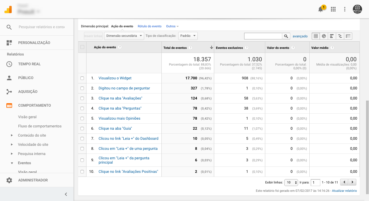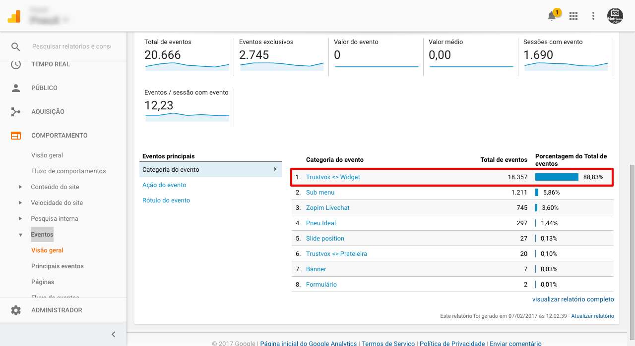 Bem fica claro que existe uma quantidade excessiva de eventos por parte da Trustvox certo? Pois bem, resolvemos ir a fundo e ver quais erão as ações desses eventos e olha o que encontramos: