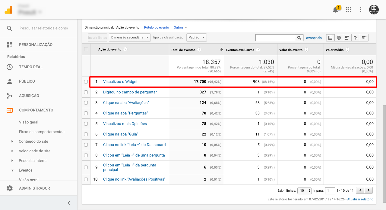 Analisando a ação percebemos que esse evento está sendo disparado toda vez que o usuário visualiza o selo no rodapé e óbvio que o problema não é mensurar o evento e sim não configura-lo corretamente. Partindo de um cenário aonde na maioria das vezes isso não é avisado para o cliente, esse hit de evento deveria estar marcado como hit de não interação, entendeu?