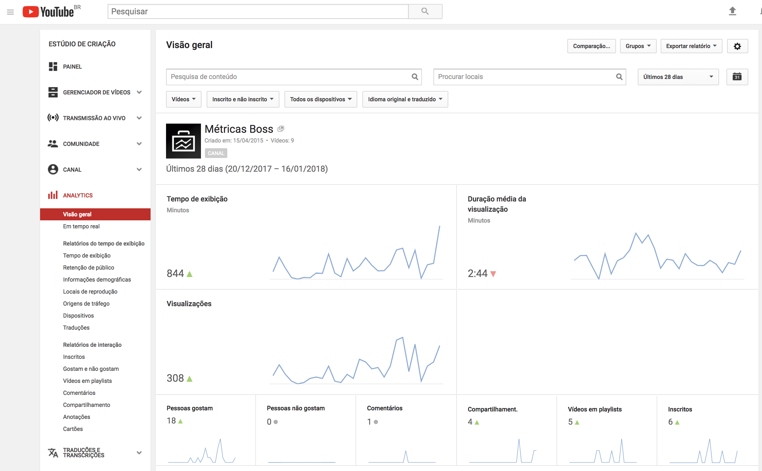 O YouTube Analytics oferece um conjunto abrangente de análise para ajudá-lo a medir o quão bem os seus vídeos estão, e onde você pode melhorar.